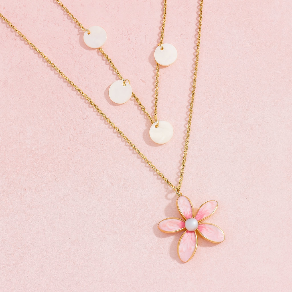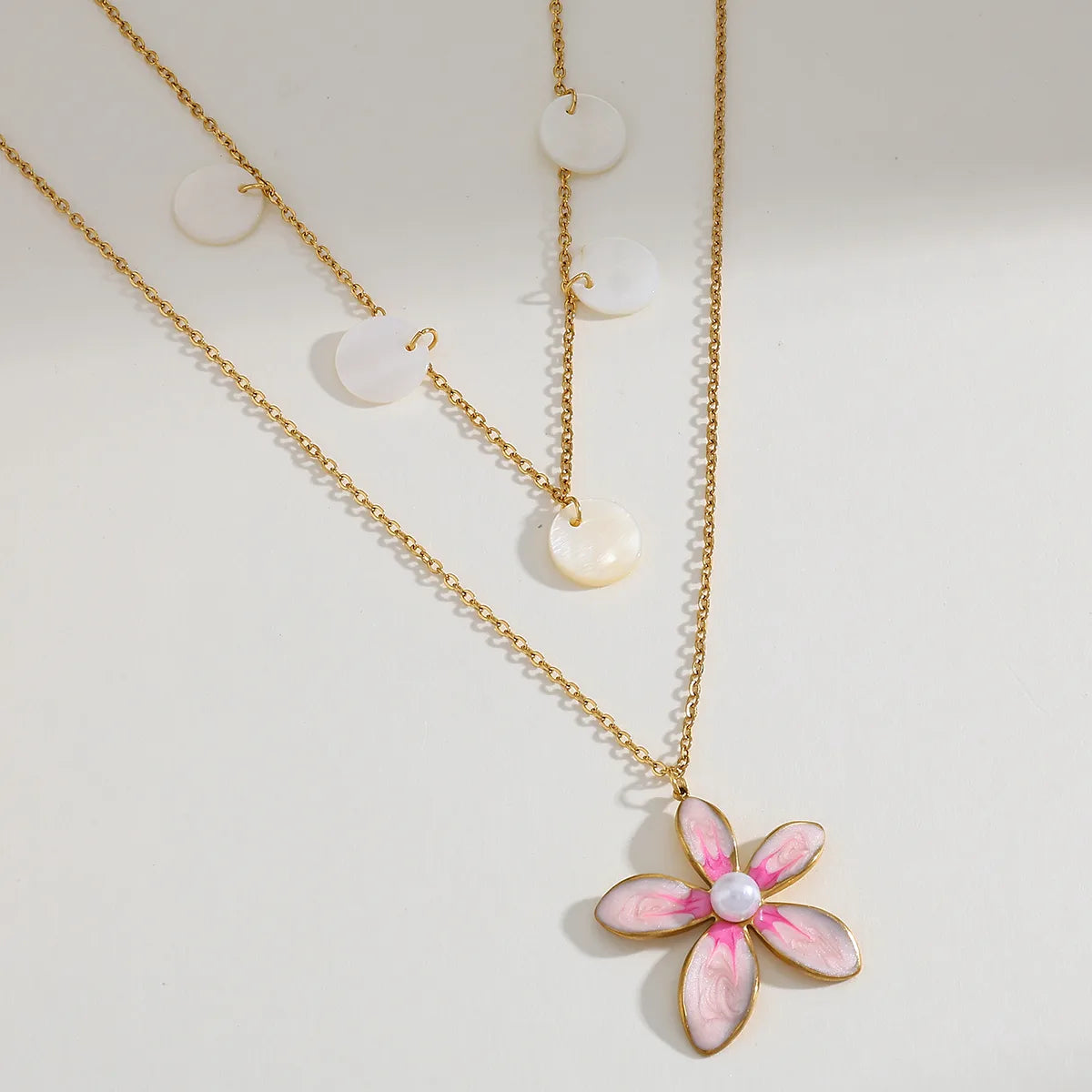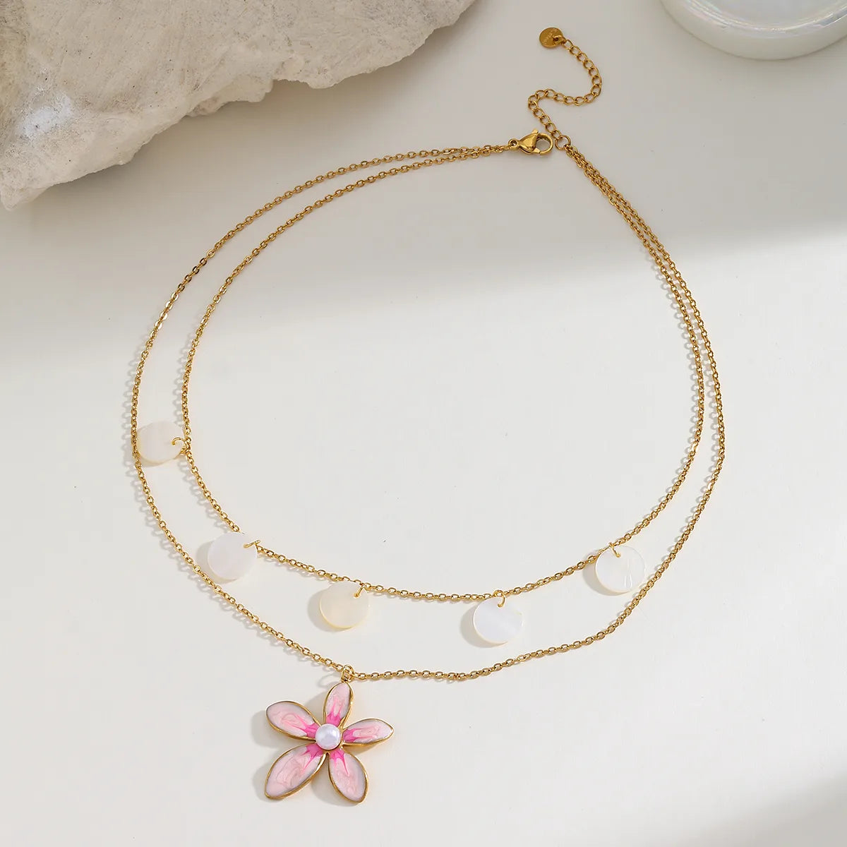 Pearl Flower Double Layer Stainless Steel Vacuum 18K Gold Plated Necklace