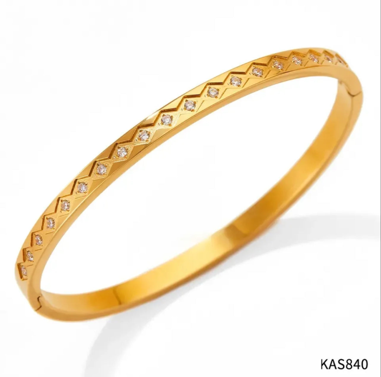 Expertly crafted with durable stainless steel plating, this Pretty Diamonds bangle features a classic geometric design accented with sparkling inlay zircon stones. Elevate any outfit with this stylish and timeless accessory.