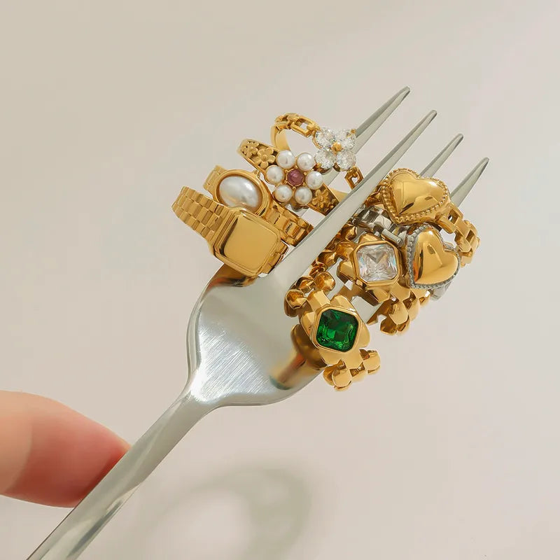 Pretty Hands 304 Stainless Steel 18K Gold Plated Waterproof Non Tarnish Mixed Metal Rings