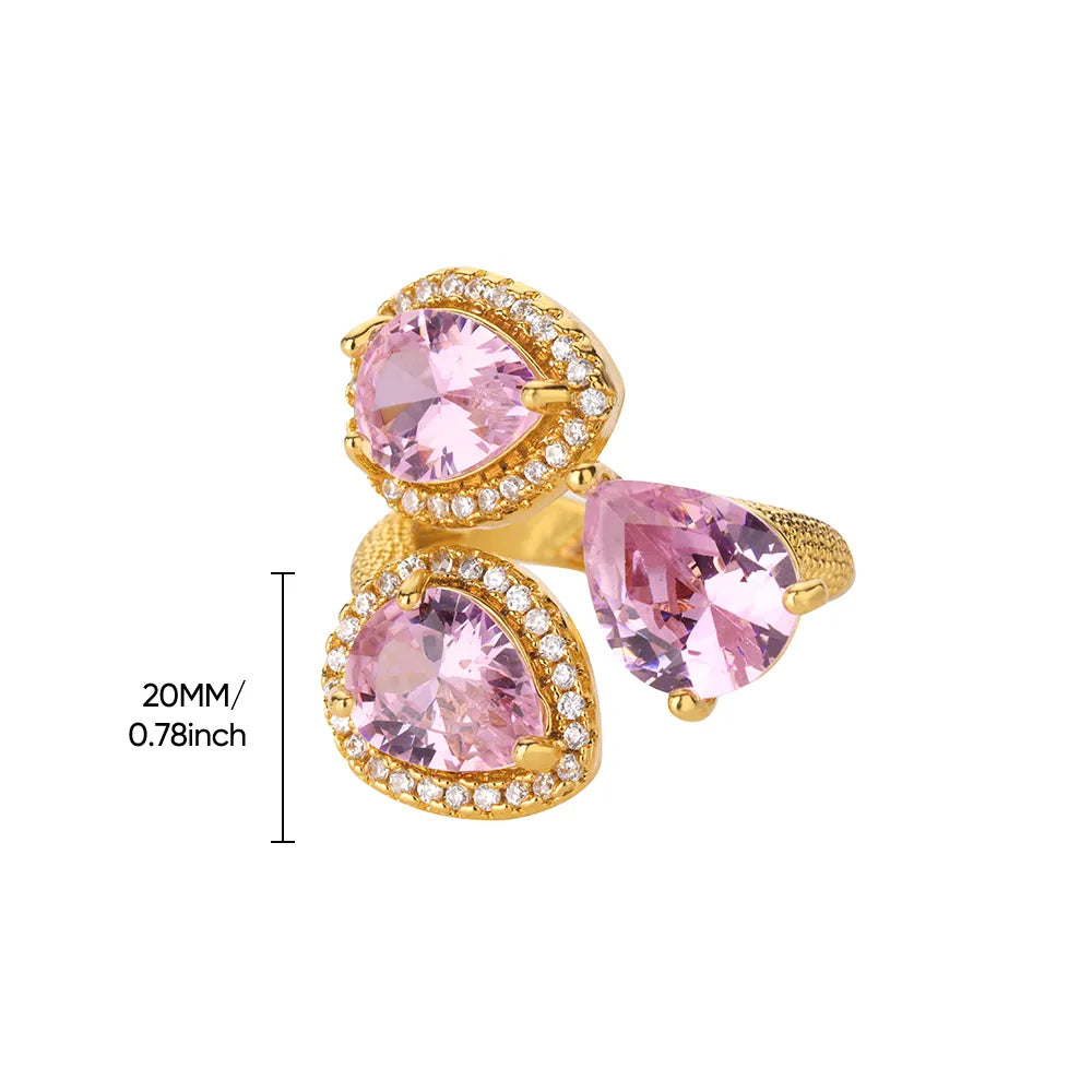 Pretty Pink Drop Zirconia 18K Gold Plated 304 Stainless Steel Ring