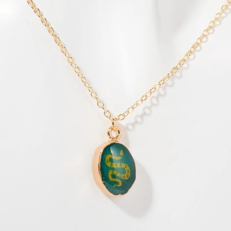Printed Patterned Geometric Copper Plating 18k Gold Plated Pendant Necklace