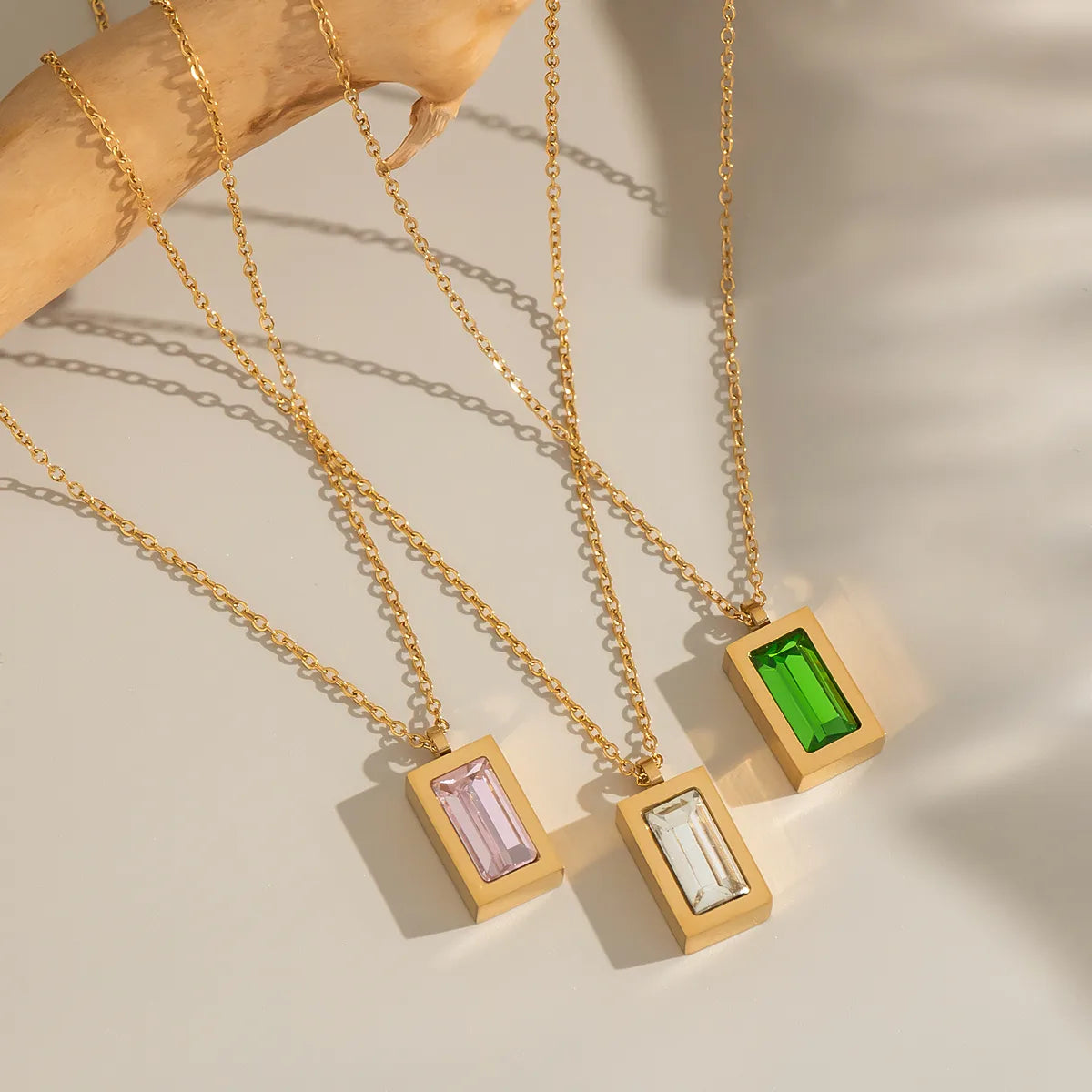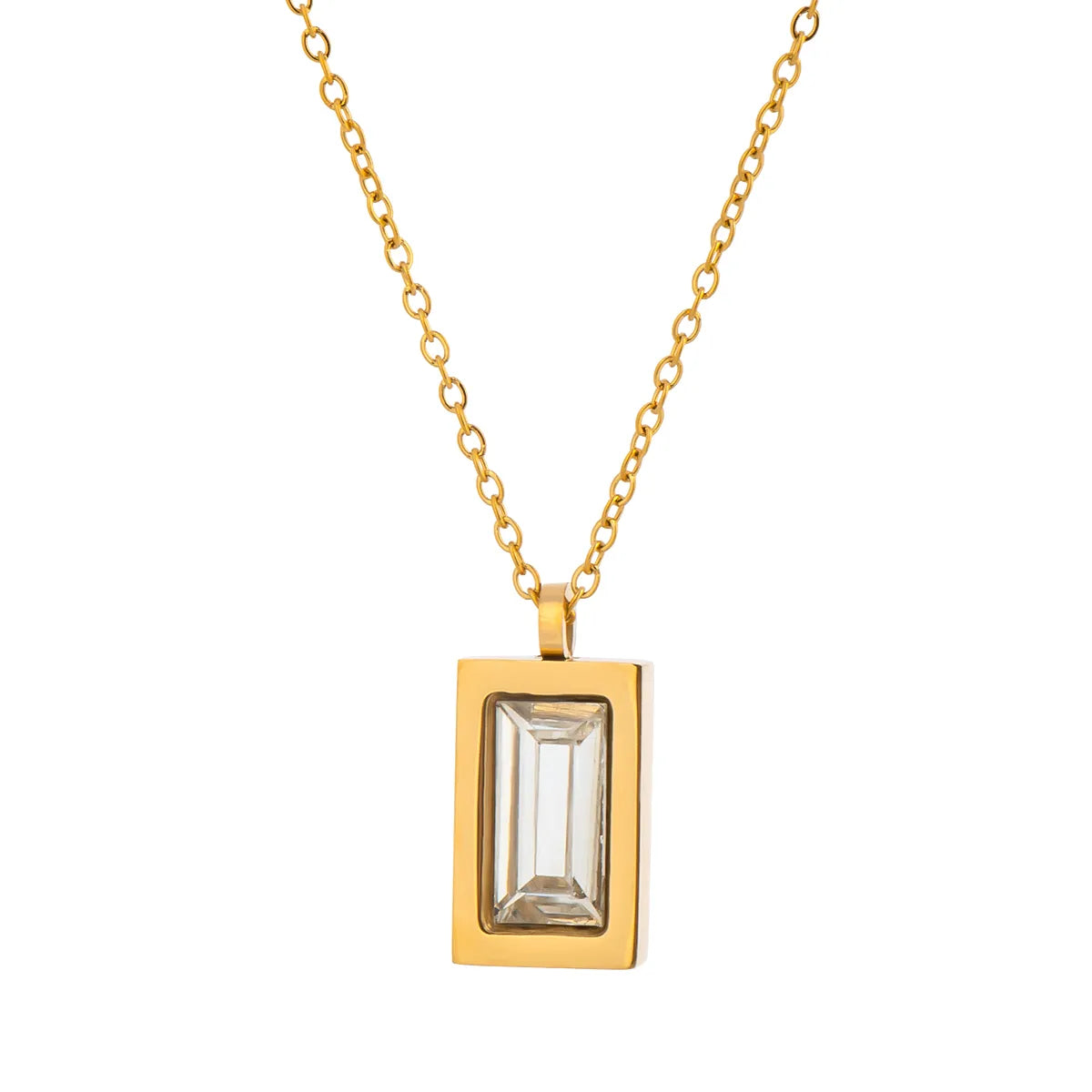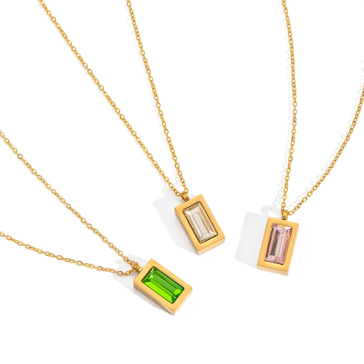 Rectangle 304 Stainless Steel 18K Gold Plated Polishing Plating Cable Chain Pendant Necklace