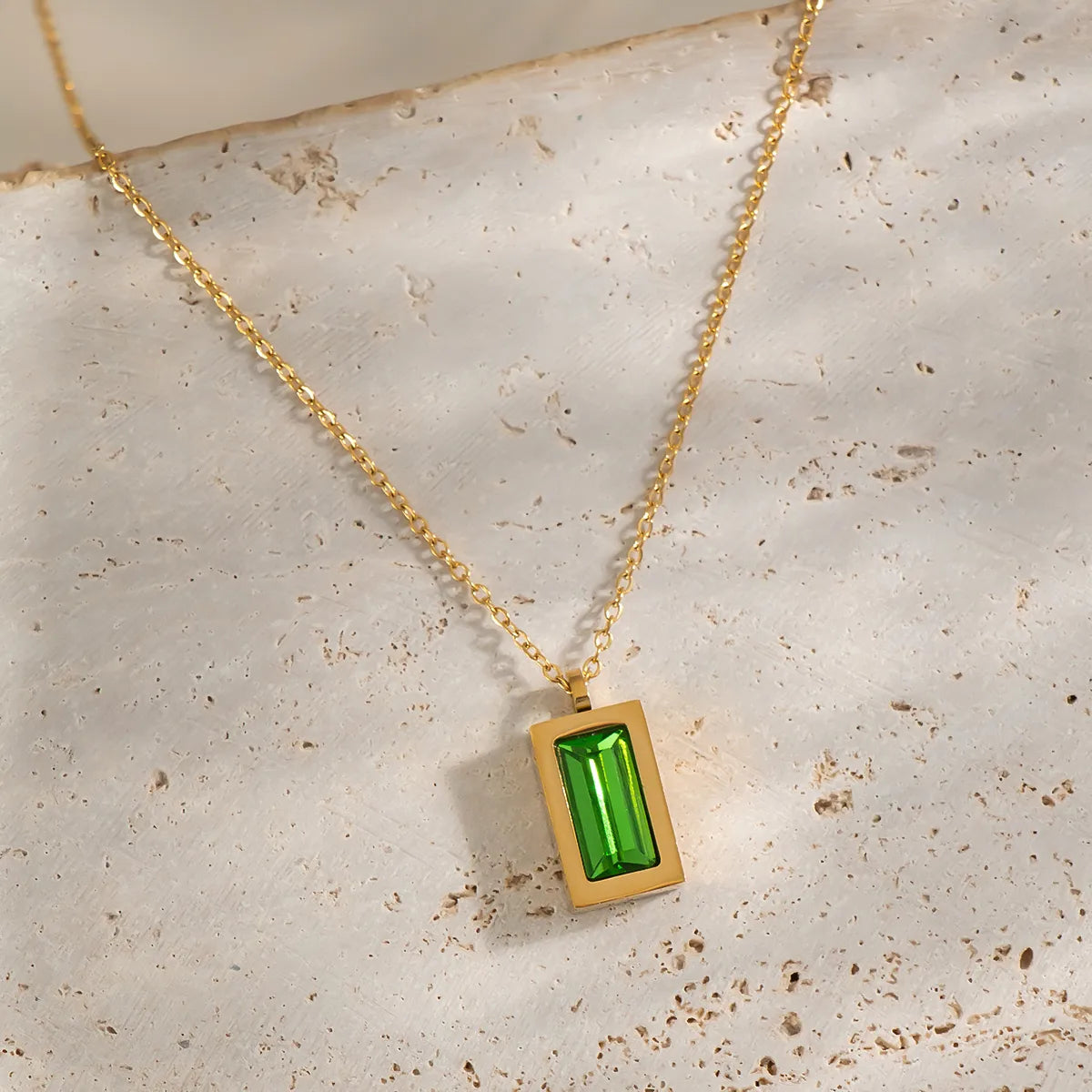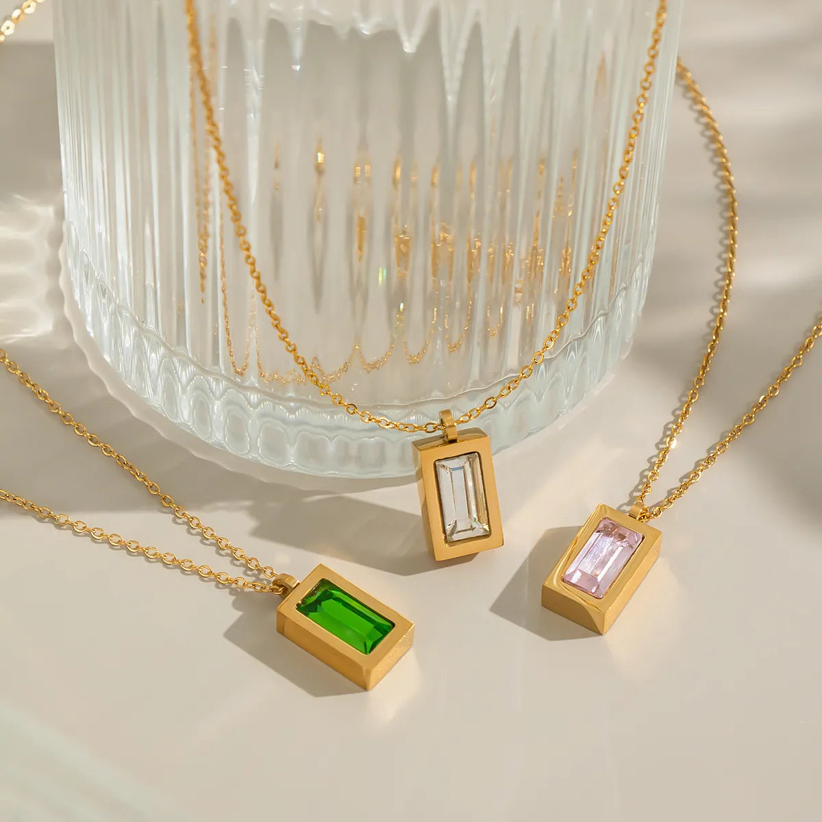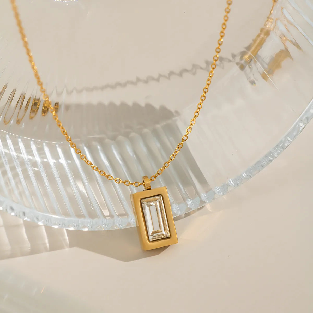 Rectangle 304 Stainless Steel 18K Gold Plated Polishing Plating Cable Chain Pendant Necklace