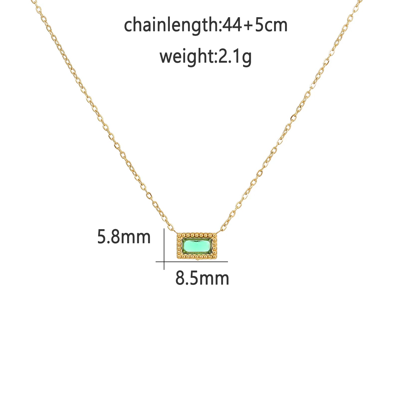 Rectangle 304 Stainless Steel Artificial Gemstones Gold Plated Inlay Pendant Necklace