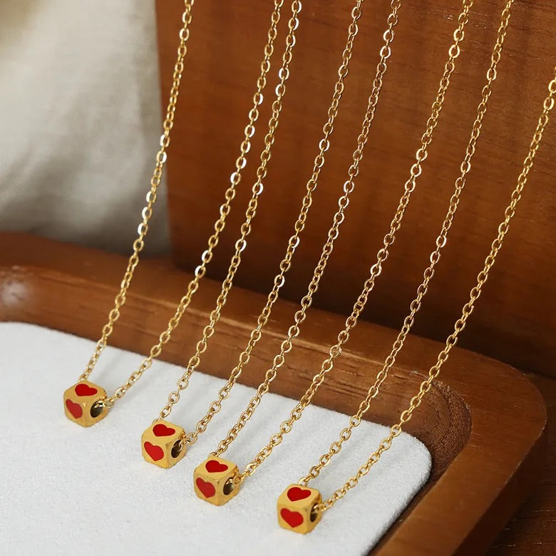 Indulge in the romantic beauty of our Red Heart Titanium Steel Enamel Plating 18K Gold Plated Necklace. Each necklace features delicate heart charms, adding a touch of love to any outfit. Made with high-quality materials, this necklace is the perfect symbol of everlasting love and a must-have for any jewelry collection.