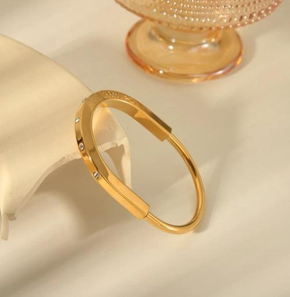 Retro Commute Oval 304 Stainless Steel 18K Gold Plated Zircon Bangle