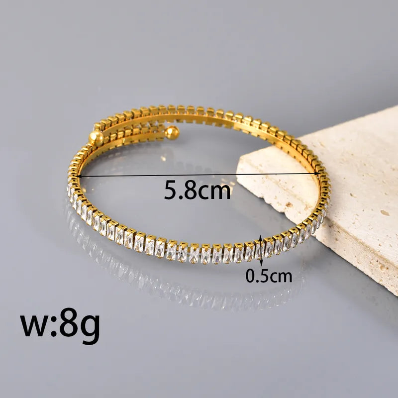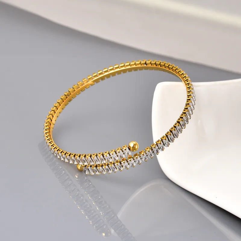 Rhinestone plated Bracelet 304 Stainless Steel 18K Gold Plated Rhinestones Bangle