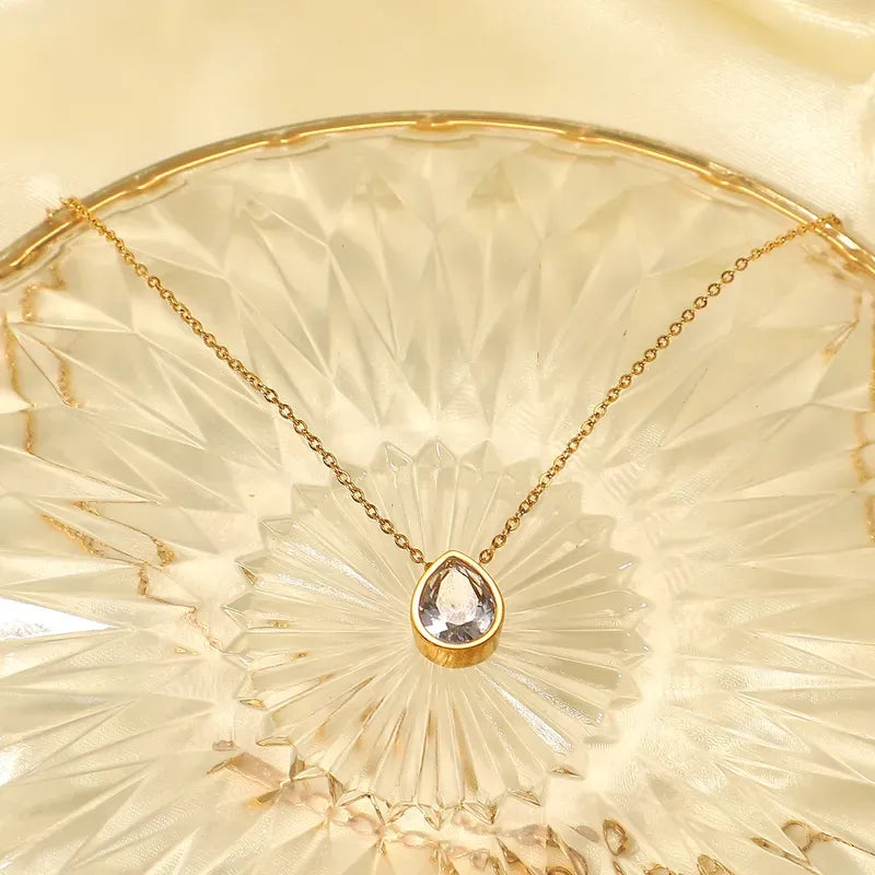 Romantic Drop-shaped Zircon Pendant Stainless Steel Necklace
