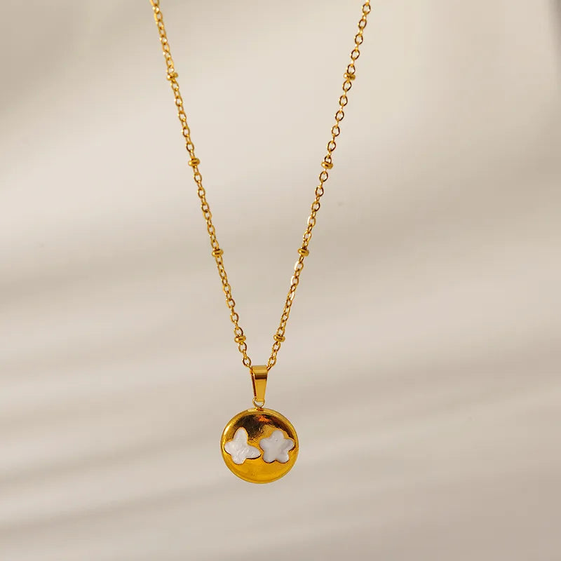 Indulge in the luxurious charm of our Round Star Moon Necklace. Made with 304 stainless steel and 18K gold plating, its hollow-out design and inlay of sparkling zircon gems evokes a playful and elegant spirit. Showcases artful craftsmanship and adds a touch of whimsy to any outfit.