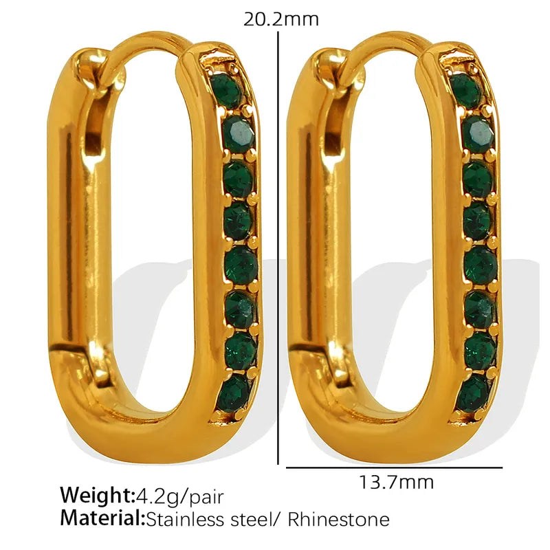 Simple Green Style Geometric Inlay Titanium Steel Zircon 18K Gold Plated Earrings