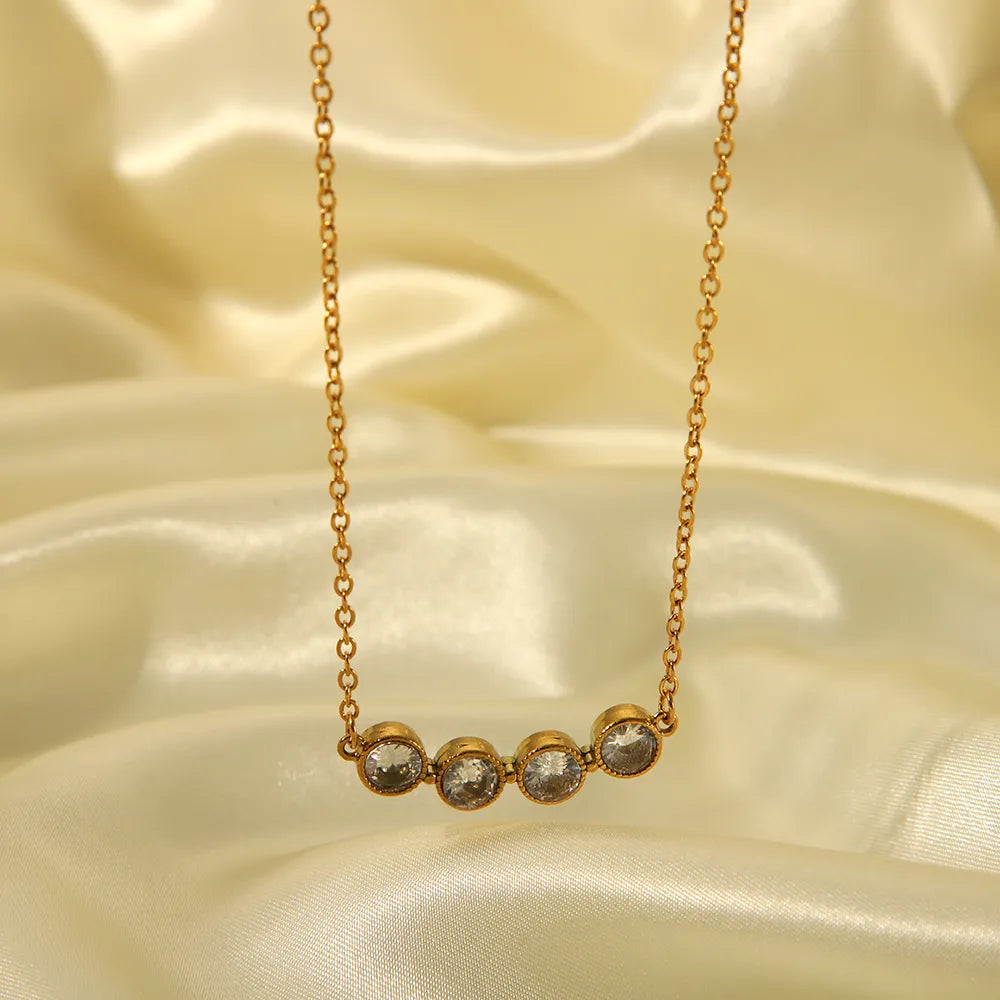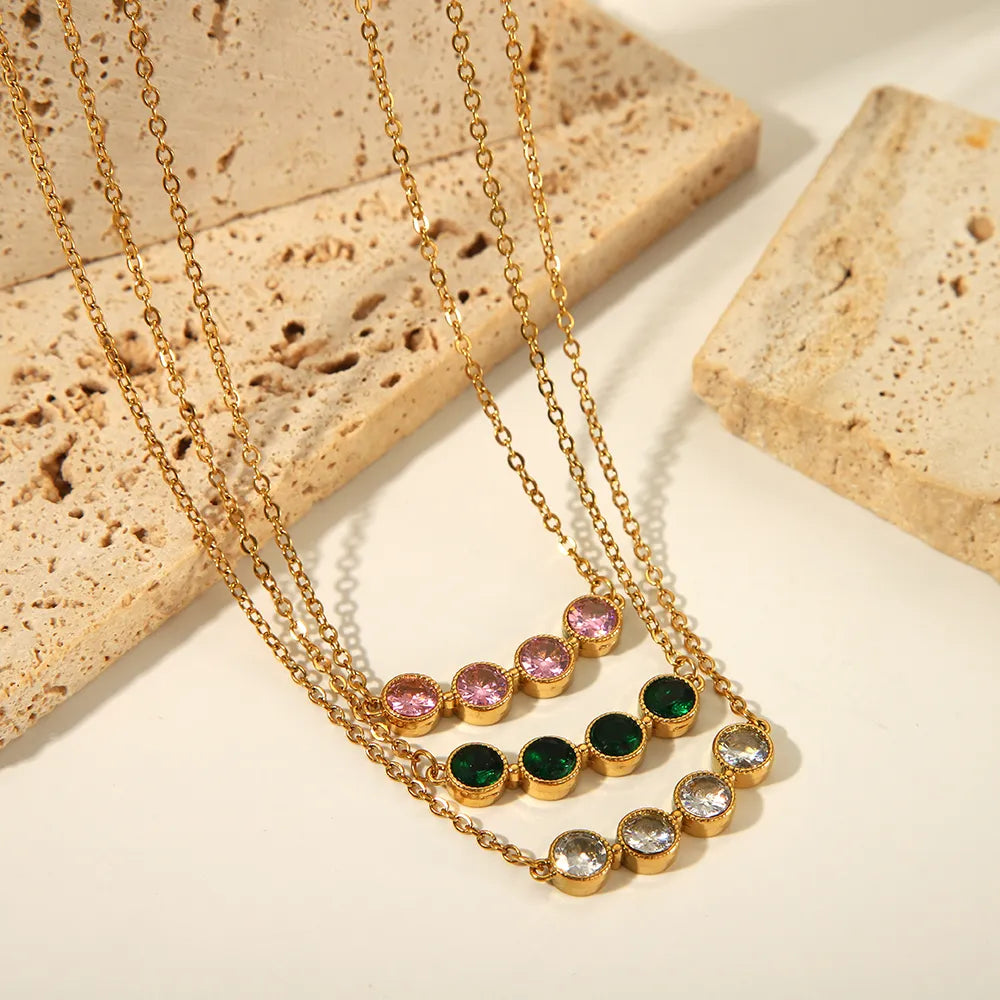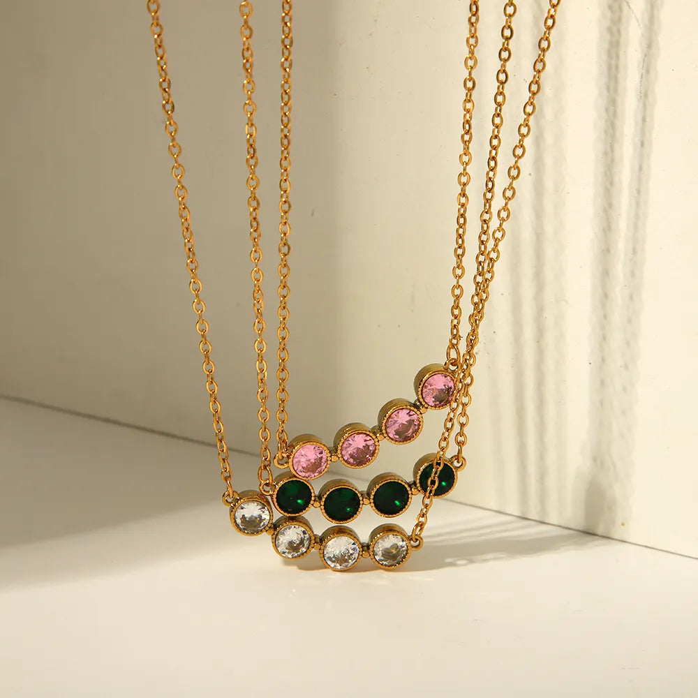 Simple Style Round 304 Stainless Steel Rhinestones 18K Gold Plated Inlay Necklace