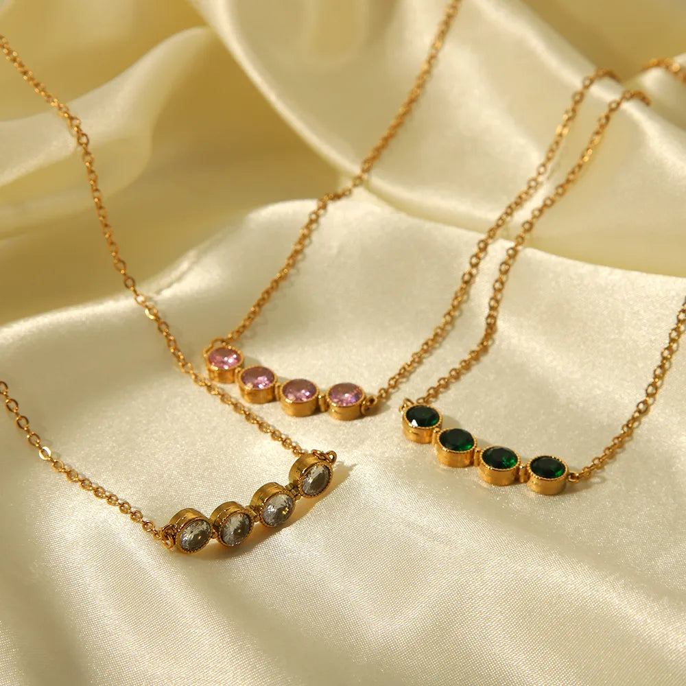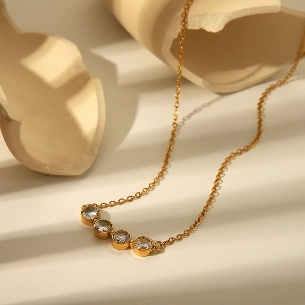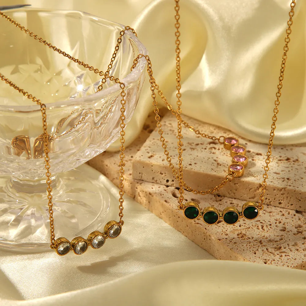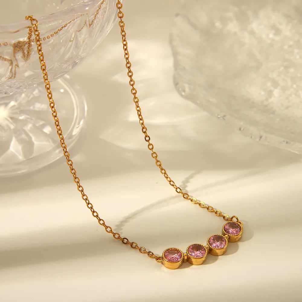 Simple Style Round 304 Stainless Steel Rhinestones 18K Gold Plated Inlay Necklace
