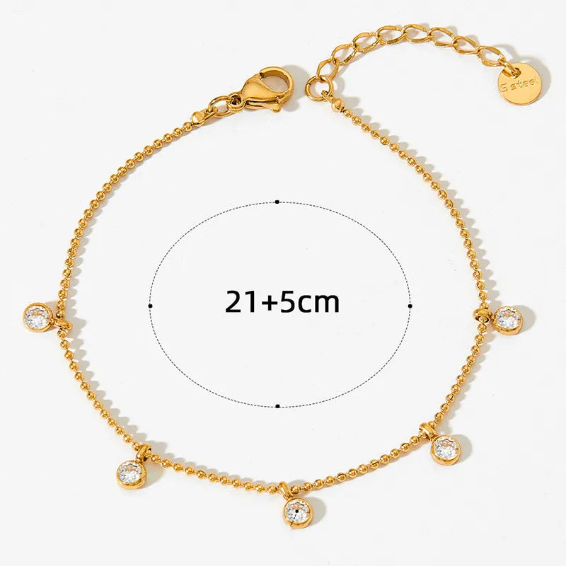 Show off your elegant style with our Simple Style Round Stainless Steel Plating Inlay Zircon Women's Anklet. Made with durable stainless steel and featuring beautiful inlay zircon, this anklet adds a touch of sophistication to any outfit. Perfect for women who appreciate timeless fashion.