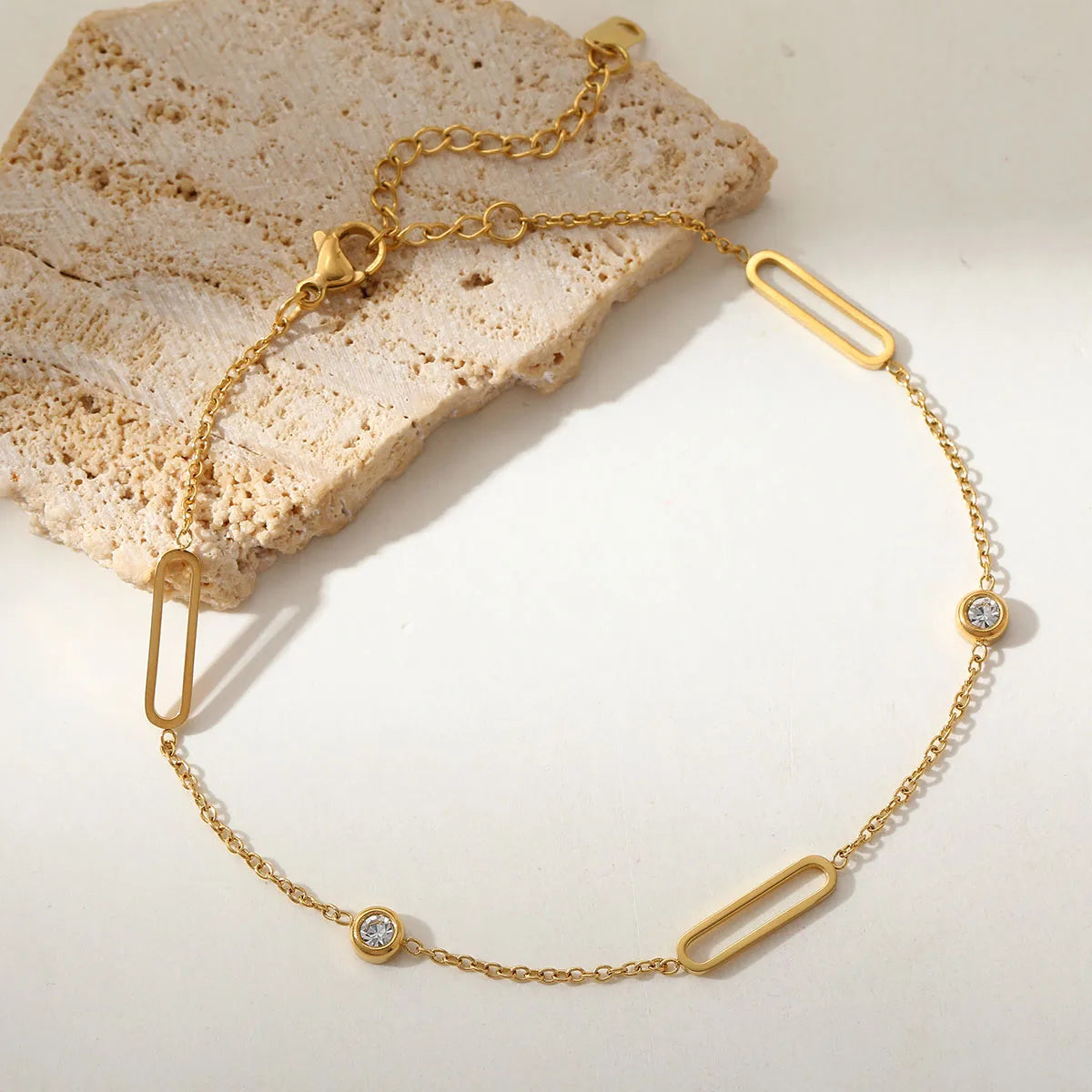 Square Pearl 304 Stainless Steel 18K Gold Plated Zircon Cable Chain Multi Charms Bracelet