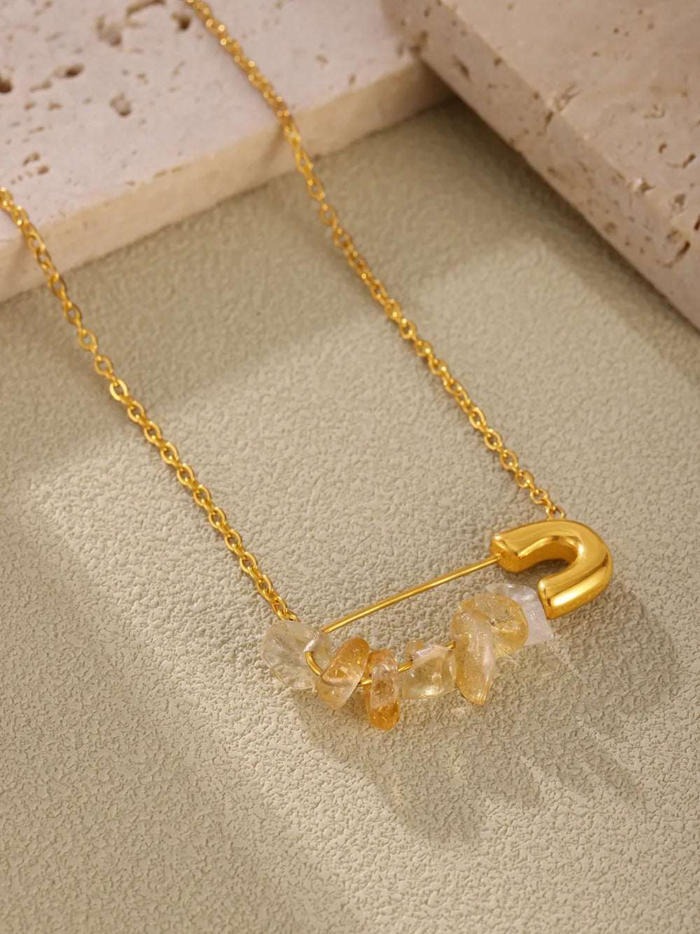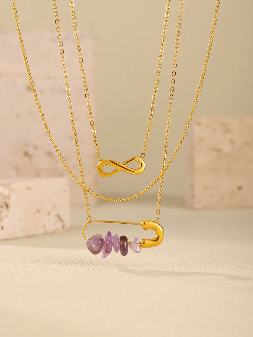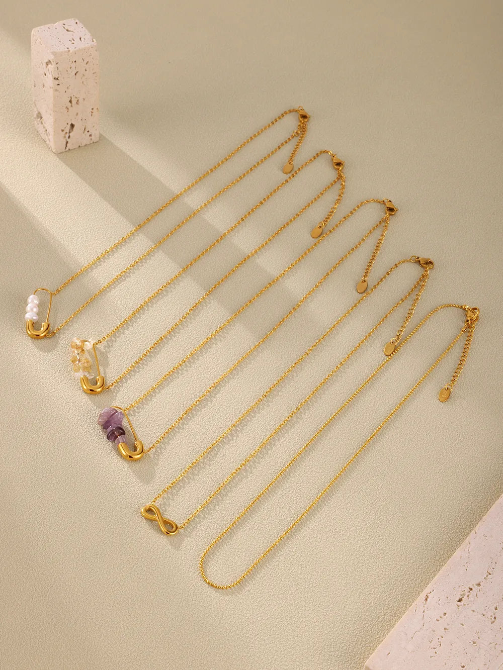Infinity Pin 304 Stainless Steel Natural Stone 18K Gold Plated Plating Pendant Necklace