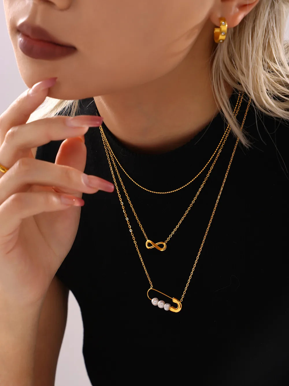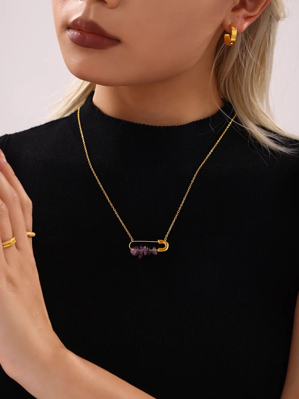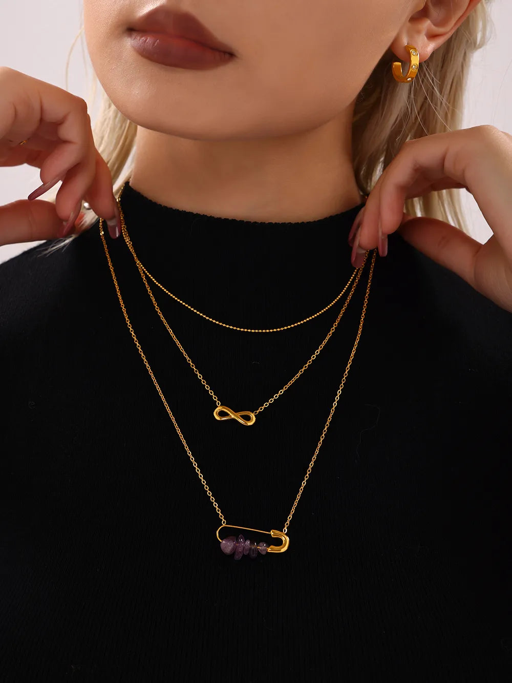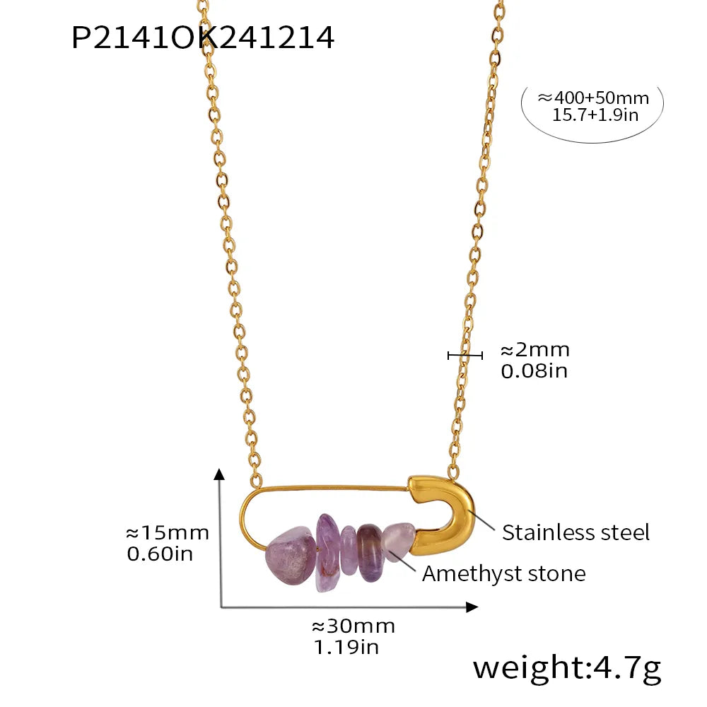 Crafted with stunning 304 stainless steel and adorned with natural stone beads, our Infinity Pin Pendant Necklace is the epitome of luxury. The 18K gold plated plating adds a touch of elegance to this timeless piece. Perfect for any occasion, this necklace is sure to add a sophisticated and exclusive touch to your wardrobe.