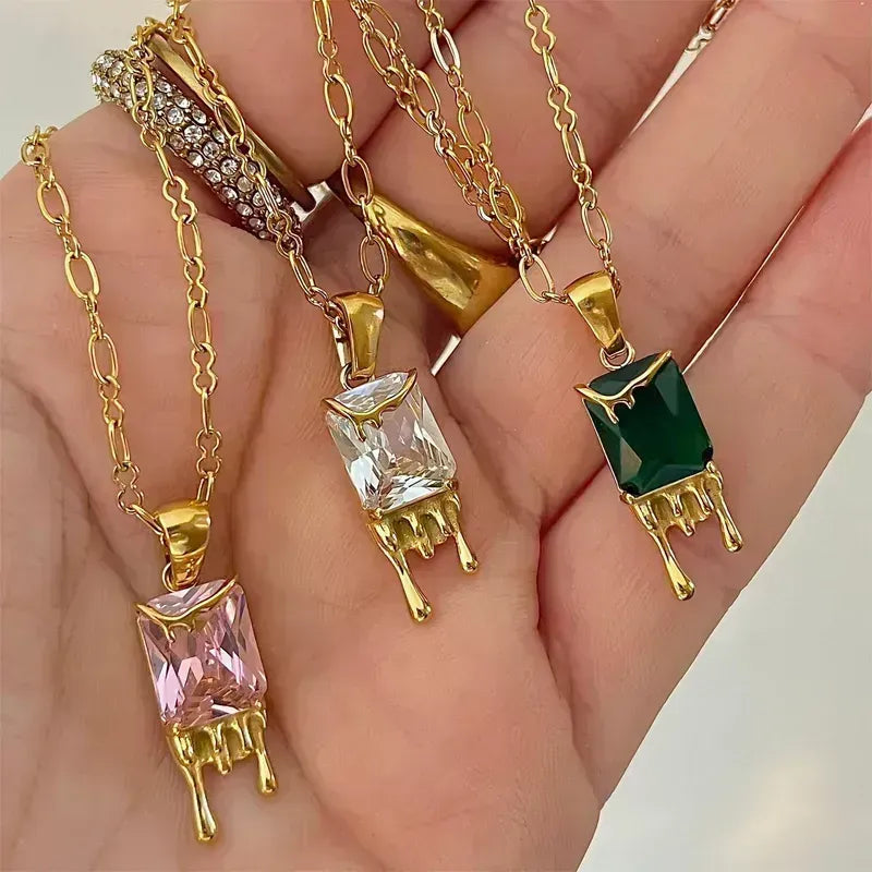 Style Square Stainless Steel Plating Inlay 18K Gold Plated Zircon Necklace