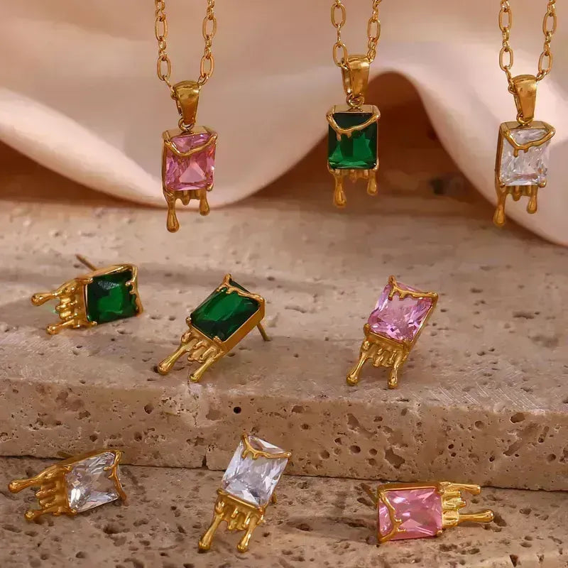 Add a touch of luxury to your look with the Style Square Stainless Steel Plating Inlay 18K Gold Plated Zircon Jewelry Set. Available in a variety of dazzling colors, this set is a perfect combination of elegance and quality. Elevate your style and make a statement with this stunning jewelry set!