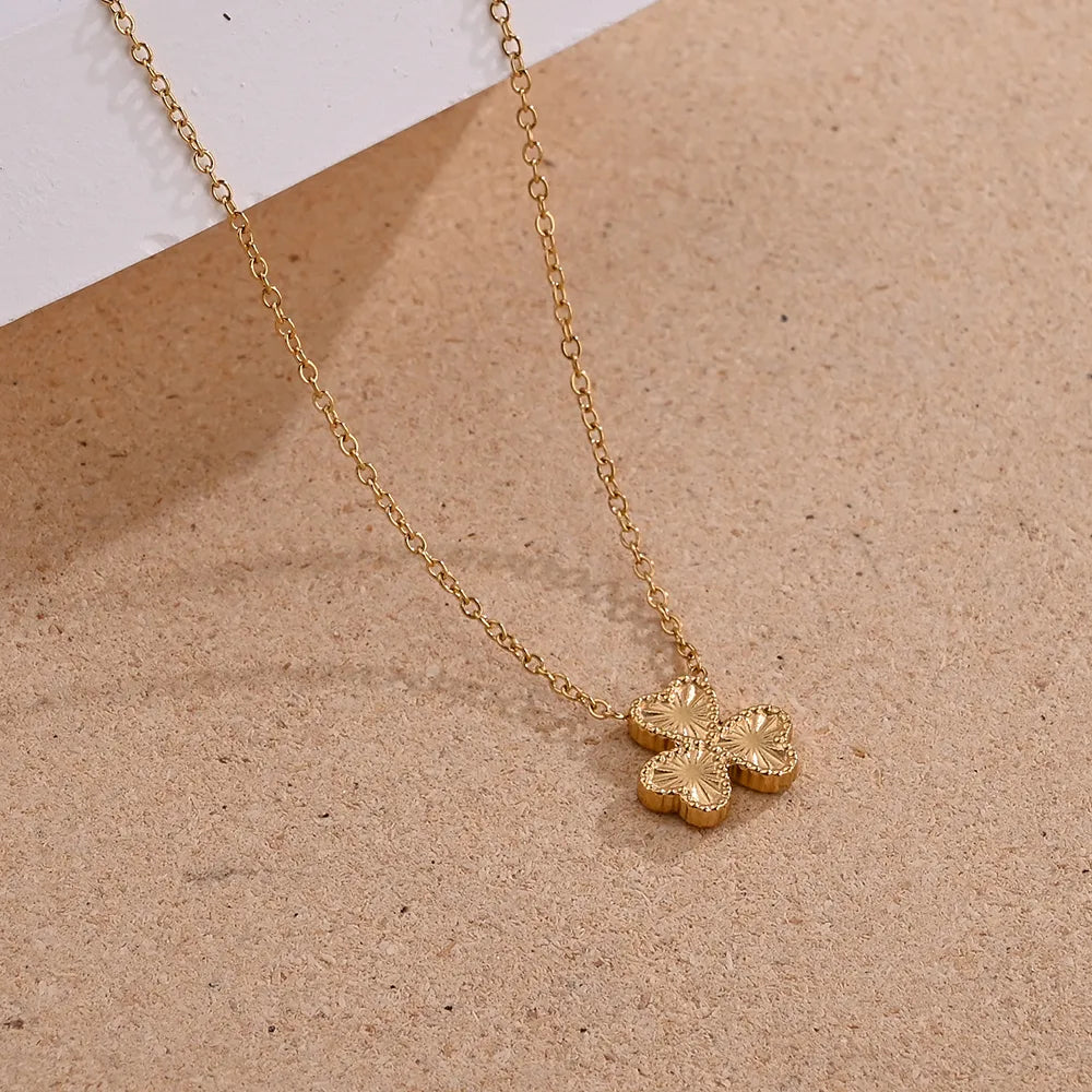 Three Leaf Clover 304 Stainless Steel Rhinestones 18K Gold Chain Necklace