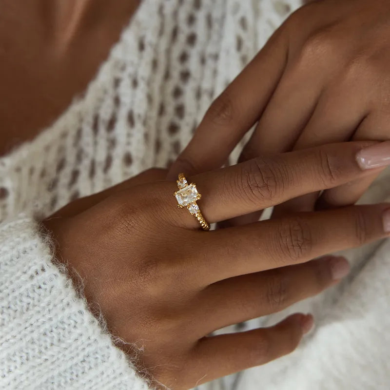 Trio Diamond Zirconia 18K Gold Plated 304 Stainless Steel Ring
