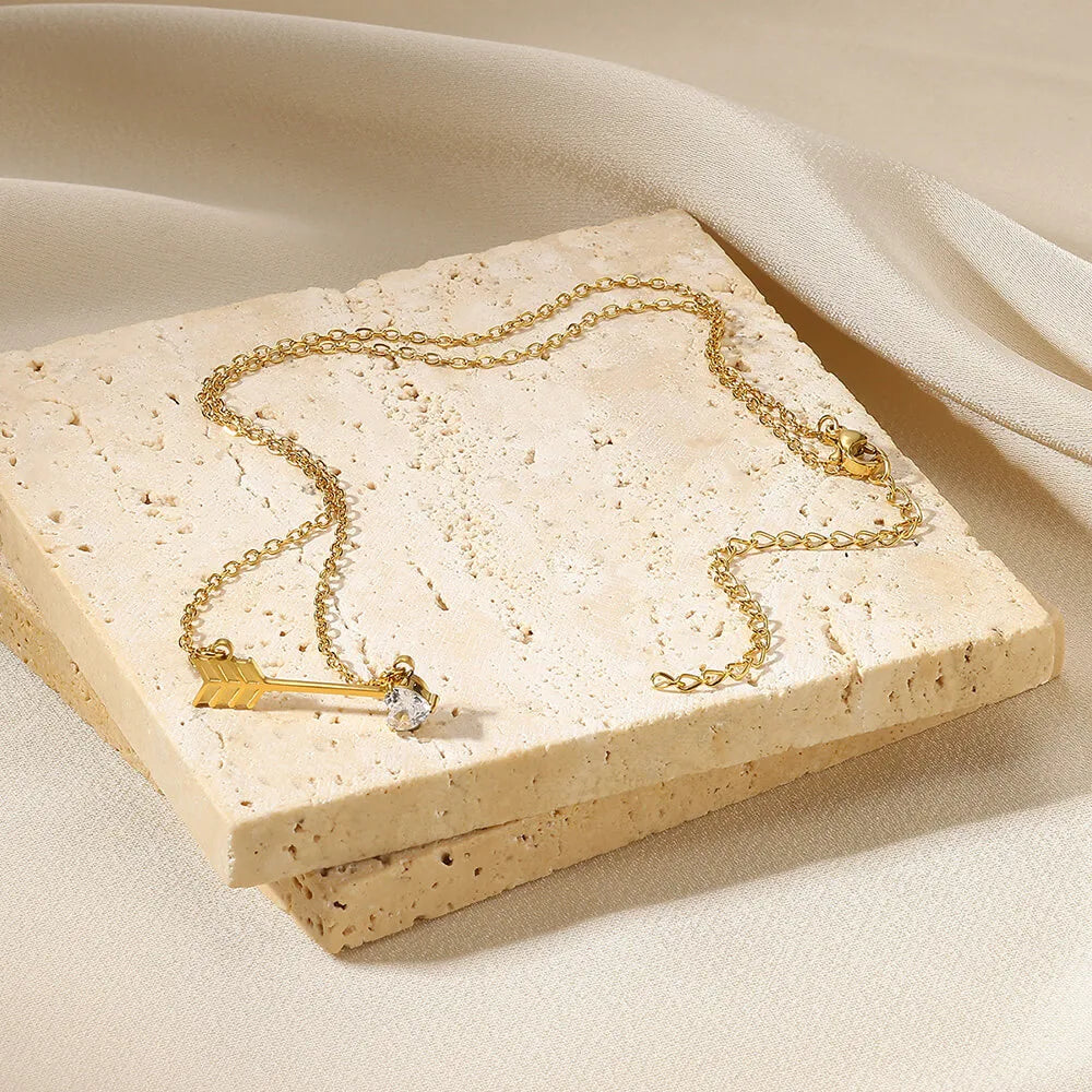Unique Arrow 304 Stainless Steel Heart Zircon 18K Gold Plated Necklace