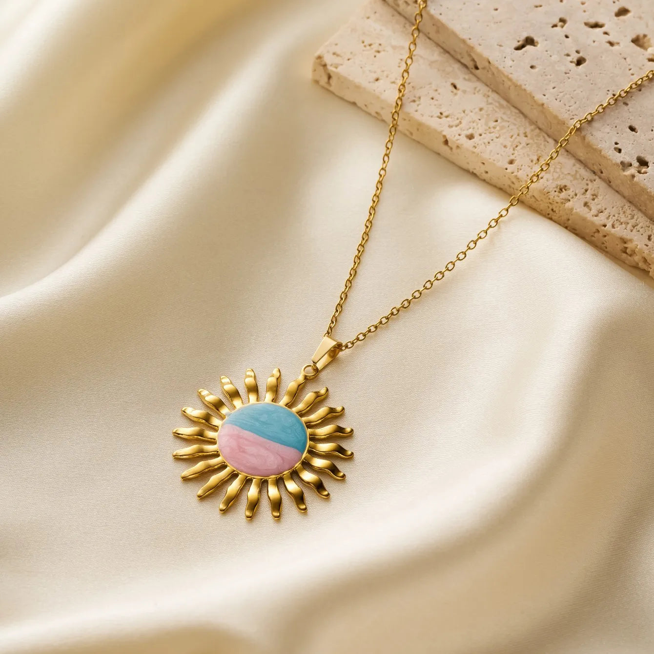 Vintage Sun 304 Stainless Steel Stone 18K Gold Plated Necklace