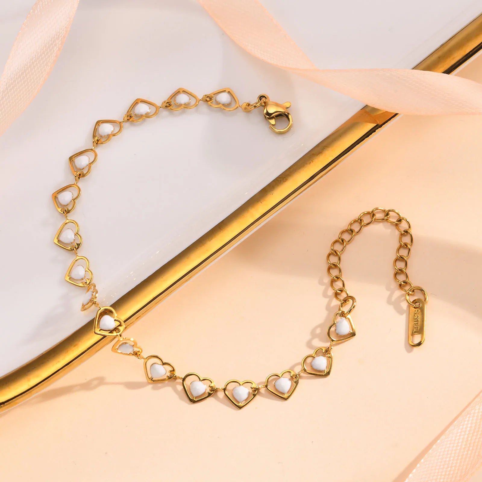 White Heart 201 Stainless Steel 18K Gold Plated Bracelet